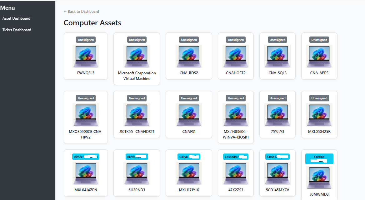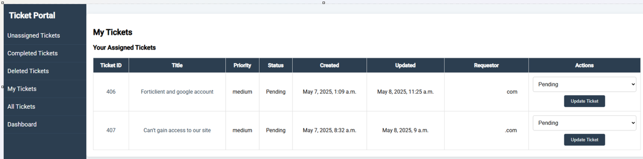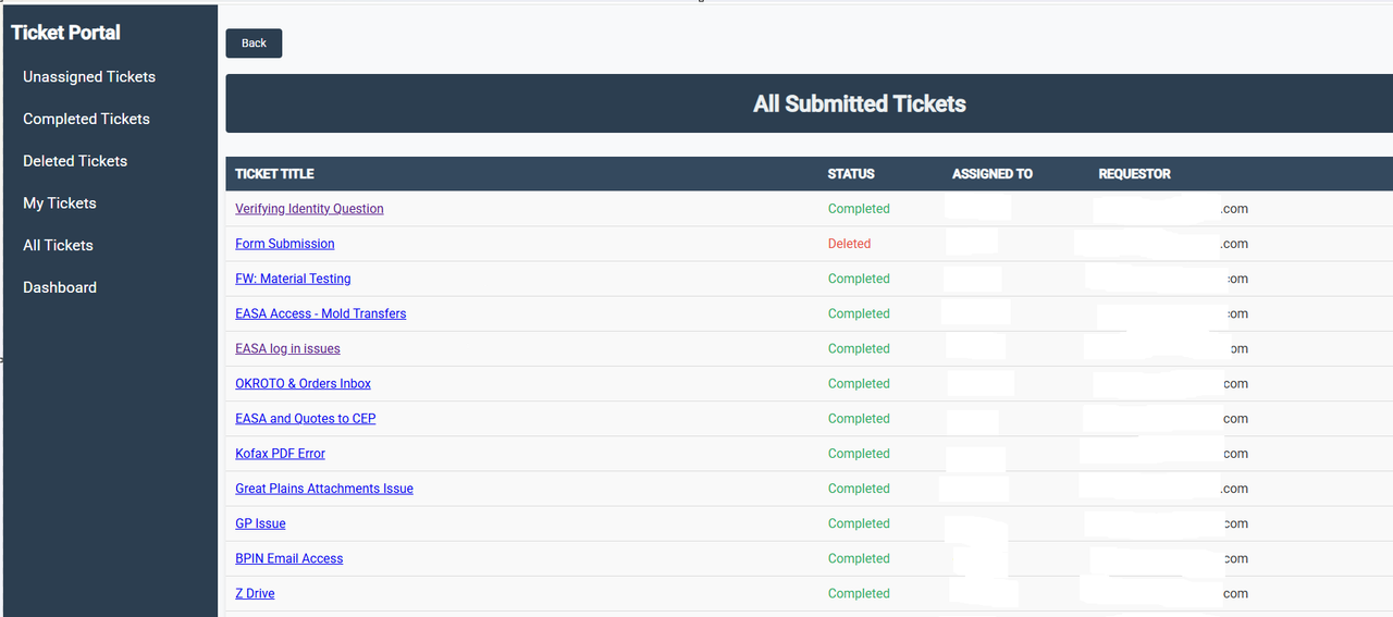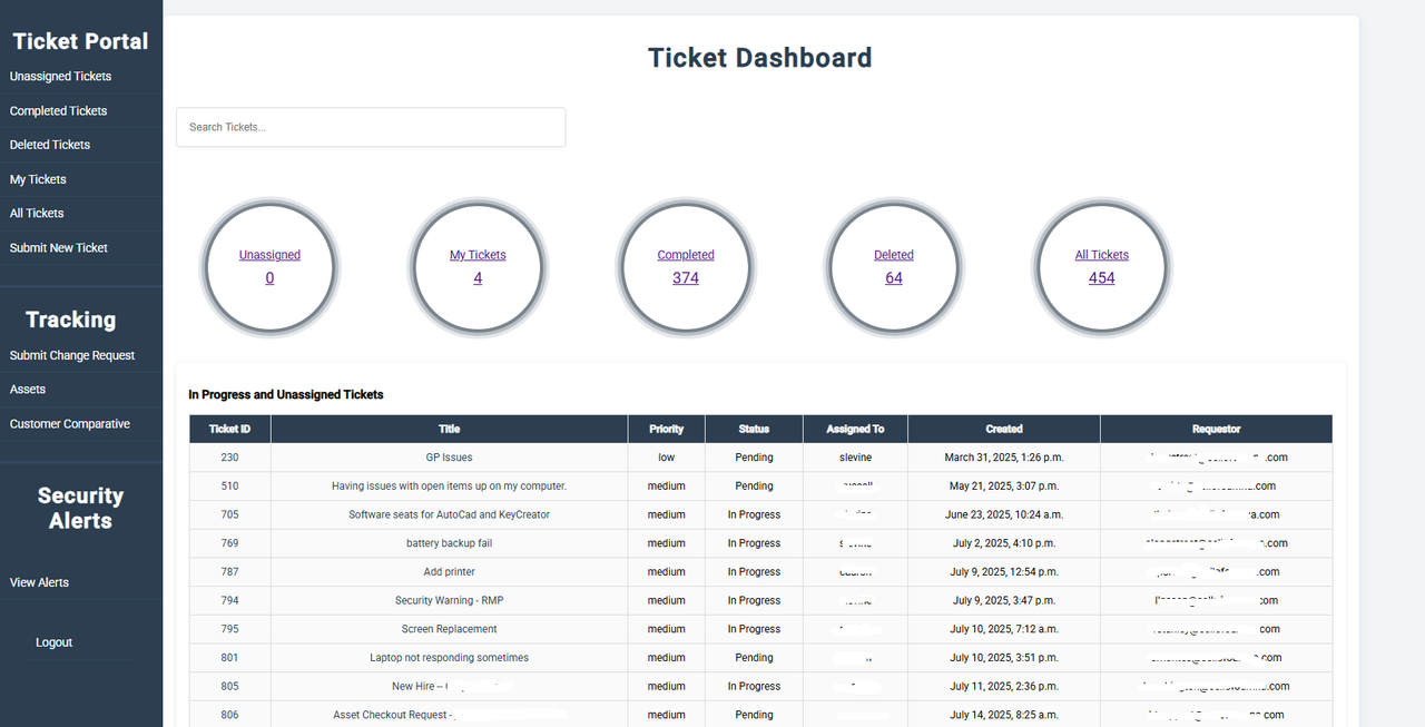 Company ticketing system, incorporating features such as change request submissions, asset tracking, and customer comparative sales tracker.