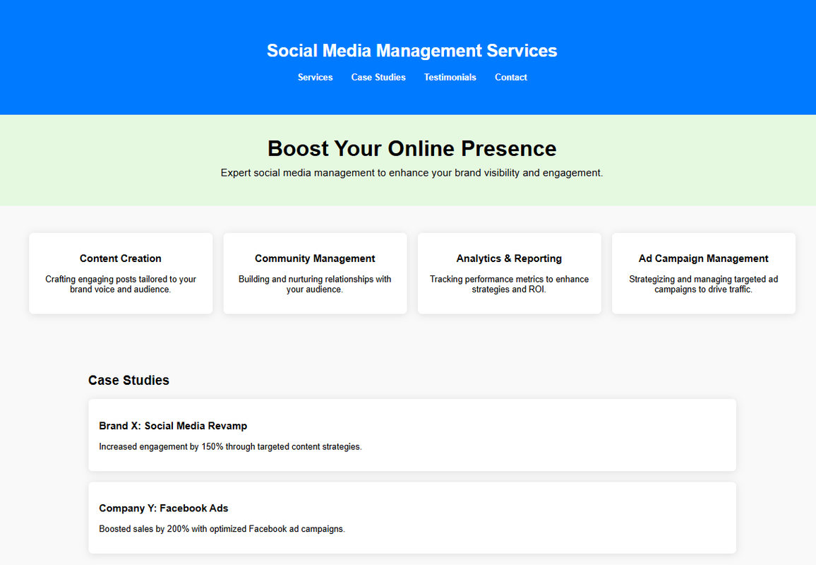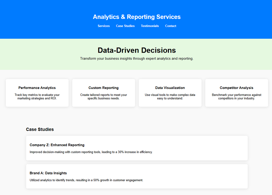 A dynamic marketing website crafted to showcase your brand’s story and services. Featuring a modern design, clear calls-to-action, and responsive layouts, it drives engagement and helps convert visitors into loyal customers.